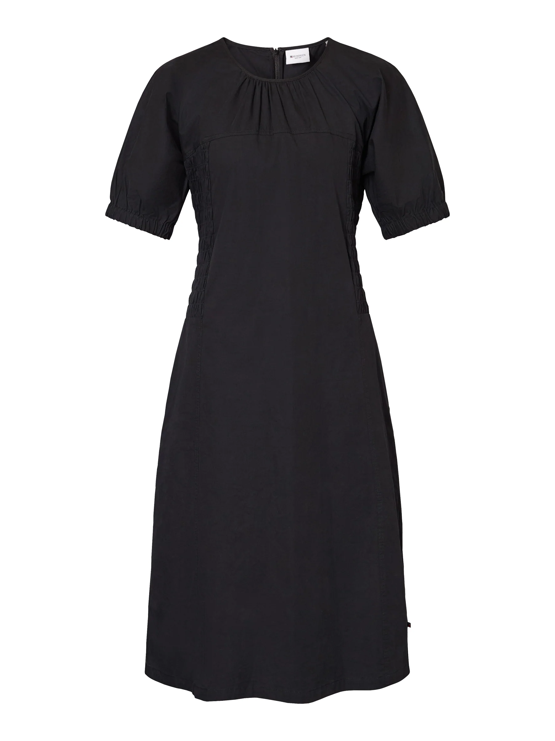 Dani har en let A-formet silhuet med fine rynkedetaljer ved brystet og elastik i ærmerne, som giver både komfort og et sofistikeret look. En alsidig kjole, der fungerer til både hverdag og mere formelle anledninger.