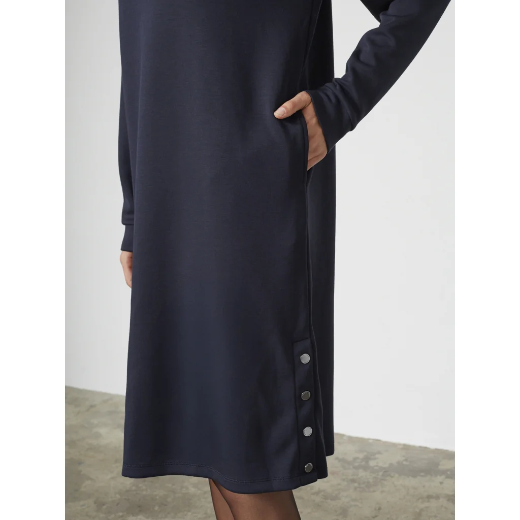 En enkel og blød sweatkjole med rund hals og lange ærmer. Den afslappede pasform giver bevægelsesfrihed og komfort, mens detaljen i siden tilføjer et diskret løft. En hverdagsfavorit, der fungerer året rundt.